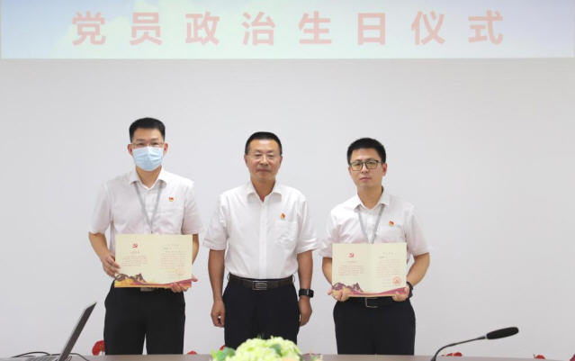 全体党员和积极分子共同观看视频《青年大学习:紧跟着中国共产党打破一个旧世界》,学习了新民主主义革命时期,广大青年跟着中国共产党打破旧世界的光辉历程。紧接着公司党总支书记刘平凡为4月份入党的叶远青和熊若虚两位的同志送上了“政治生日”纪念卡,叶远青同志分享了他的入党心路历程,熊若虚同志也作了“五四运动与新时代的青年使命”的分享