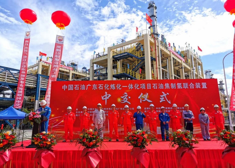 广东石化石油焦制氢联合装置于2019年12月16日开工,占地面积22万平方米,总体工程量包括1238台套设备安装、120万吋工艺管道焊接、26万立方米混凝土浇筑、1.7万吨钢结构安装,是广东石化炼化一体化项目全厂占地面积最大、构建筑物最多、混凝土浇筑量最大、设备安装台数最多的单体装置,也是中国石油第一套石油焦制氢装置。