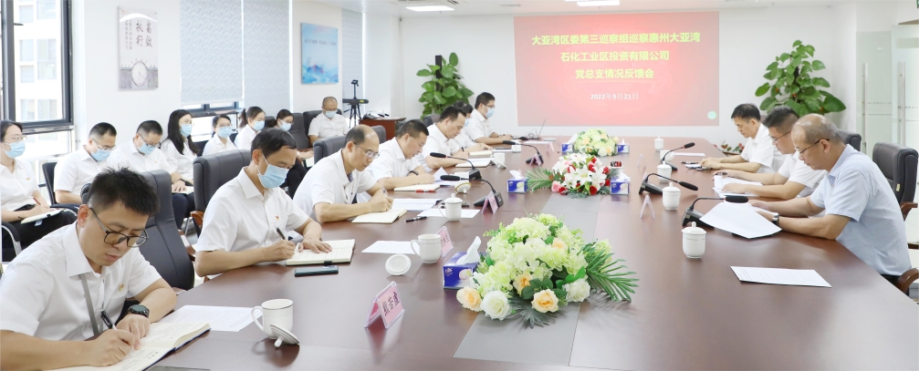 9月21日,区委第三巡察组巡察石化投资公司党总支情况反馈会召开,会议传达学习了区委书记专题会议精神,通报了区委第三巡察组对石化投资公司党总支的巡察情况,并就问题整改提出了具体要求。区纪委副书记、监专办副主任黄敏,区纪委常委、区委巡察办主任廖远光,区委第三巡察组组长李永权,区纪委驻财政局纪检组长叶爱平,区委国资工委副书记张峰浩出席会议。公司党总支书记、董事长、总经理刘平凡主持会议。