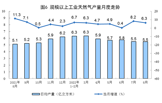 1—8月份,生产天然气1437亿立方米,同比增长5.5%。进口天然气7105万吨,同比下降10.2%。