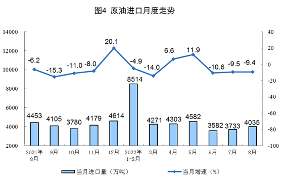 进口数据来源于海关总署,其中2022年8月份数据为快讯数据。