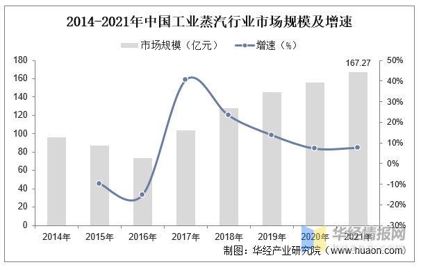 2014-2021年中国工业蒸汽行业市场规模及增速