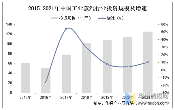 2015-2021年中国工业蒸汽行业投资规模及增速