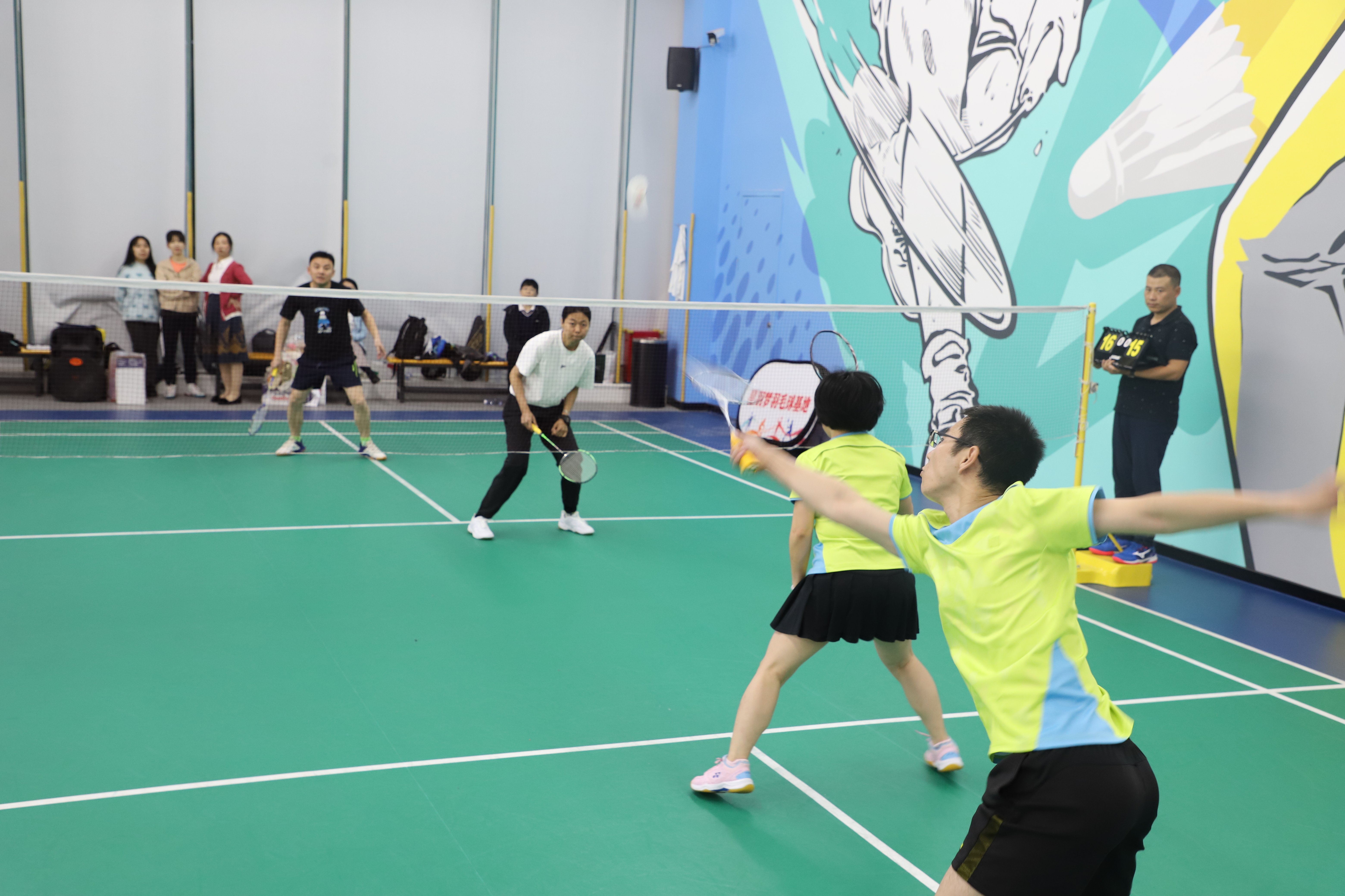 3月30日下午5点,备受瞩目的晋级赛拉开帷幕。与初赛相比,晋级赛各支队伍竭尽全力,各显其能,放网、跳跃、扣杀、呐喊……场上拼杀激烈,场下不时传来欢呼声、加油声和阵阵掌声。经过一个多小时的拼杀,倪林生/赖惠霞、吴剑峰/冯云、吴柯文/吴思华、赵广东/张怡然四支队伍成功出线,进入决赛。