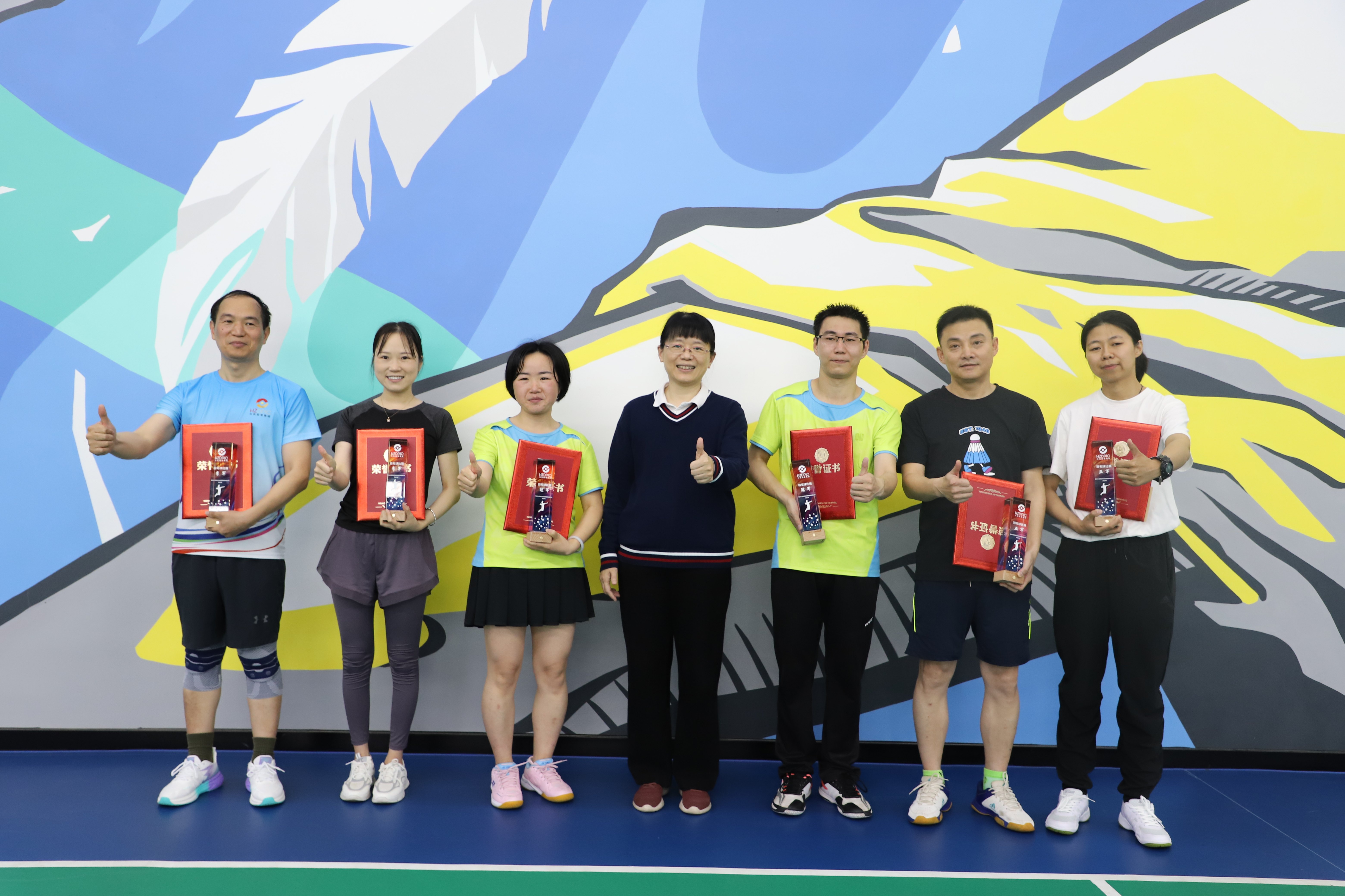 高手间的对决,胜负只在瞬间。四支决赛队伍“龙争虎斗”,皆是全力以赴、寸土必争,“厮杀”无比激烈、比分异常胶着。挑打扣杀、吊跑扑救,选手们的每一次挥拍都扣人心弦。最终,“峰云队”(吴剑峰/冯云)以黑马之姿异军突起,从小组赛中杀出重围,英勇夺冠。“粤然队”(赵广东/张怡然)虽有傲视群雄的实力和风驰电掣般的速度,但因默契略显欠缺屈居亚军;“霓霞队”(倪林生/赖惠霞)虽平时训练较少,却以刚猛浑厚的后场进攻和轻灵飘逸的前线防守配合得天衣无缝,位列季军。