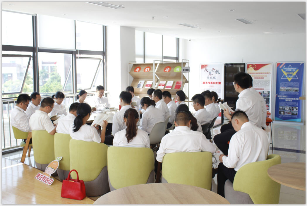 随后,支部副书记程建茹同志带领支部全体同志到中心读书室,在轻松舒适的环境里,全体同志每人手捧《习近平关于“不忘初心、牢记使命”论述摘编》,细细品读,通过深情诵读自己感触最深的论述以及共同朗诵,同志们更深刻地领会共产党员的初心和使命,心中不禁涌起一股奋发作为的澎湃动力。