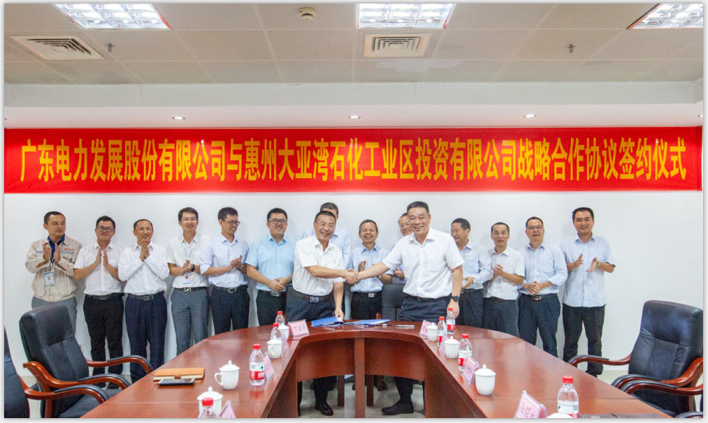10月22日,广东电力发展股份有限公司与我司在惠州大亚湾签署了战略合作协议。公司董事长、总经理刘平凡,广东电力发展股份有限公司(简称粤电力)总经理郑云鹏,广东惠州天然气发电有限公司总经理陈创庭等参加了本次签约仪式。