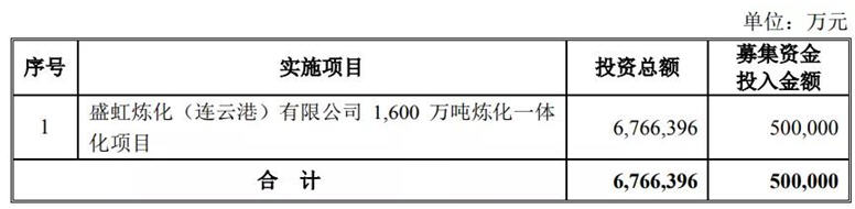 据悉,盛虹1600万吨/年炼化一体化项目位于江苏省连云港市徐圩新区石化产业园内,总投资约677亿元,计划建设周期为36个月,投产后可实现年均利润总额126亿元。项目设计原油加工能力1,600万吨/年,芳烃联合装置公称规模280万吨/年(以对二甲苯产量计),乙烯裂解装置公称规模110万吨/年。