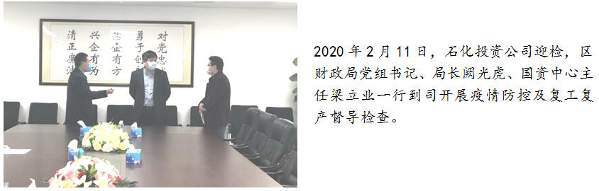 2020年1-2月期间,公司党支部书记、董事长、总经理刘平凡多次召开支委会会议和总经理办公会,研究部署石化投资系统的防疫防控和安全复工复产工作,要求全体党员群众勇当先锋。
