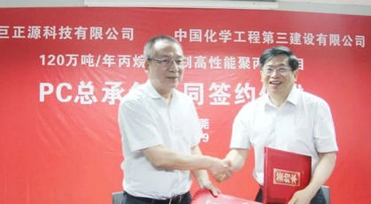 6月19日下午,东莞巨正源科技有限公司120万吨/年丙烷脱氢制高性能聚丙烯项目二期工程PC总承包合同签字仪式在广东东莞二期工程现场举行,工程合同价款12.38亿元人民币。