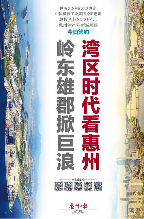 交通带动产业、产业支撑城市。今日,惠州市政府与中国机械工业集团有限公司(以下简称“国机集团”)签订惠州湾产业新城合作建设框架协议,标志着又一世界级水准的产业新城项目落子惠州。