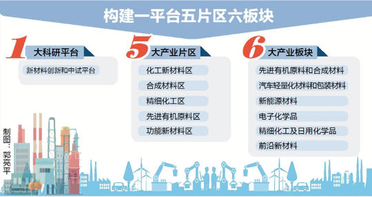 惠州新材料产业园拟利用园区的区位、物流、资源优势,与周边化工园区错位发展,形成独具特色的产业结构。该产业园将构建“一平台五片区六板块”。
